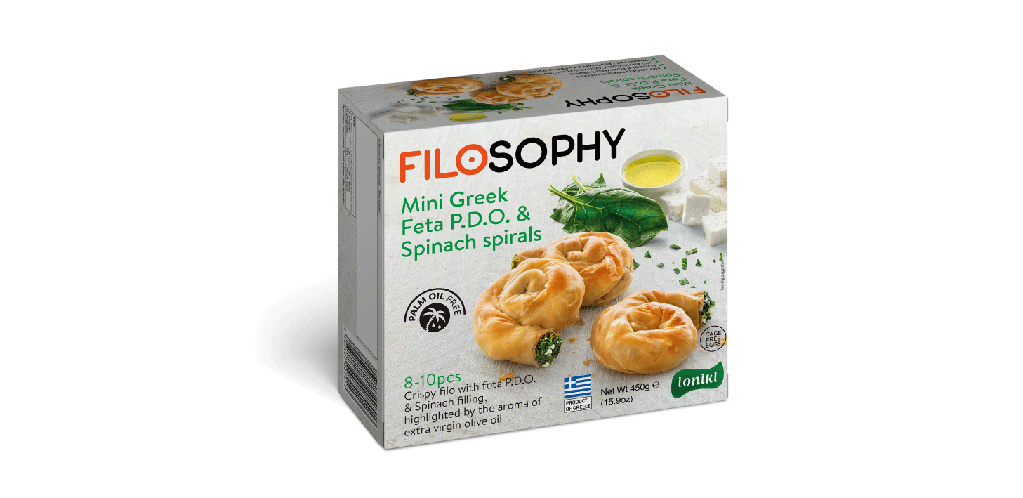 By wrapping this blend of freshly cut herbs combined with spinach and authentic feta cheese in mini spiral pies, we have created a wonderful taste which is highlighted by the aroma of the extra virgin olive oil. Enjoy this delicious idea that incorporates tradition with contemporary dietary values. A complete, easy-to-make meal, for the family that has no time to waste.